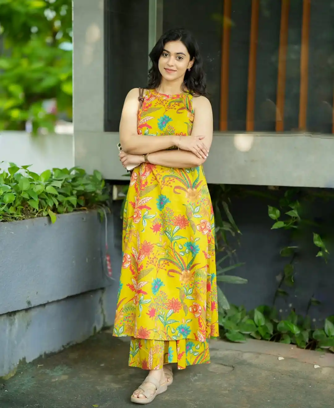 Yellow Floral Sleeveless Kurti with Palazzo Set