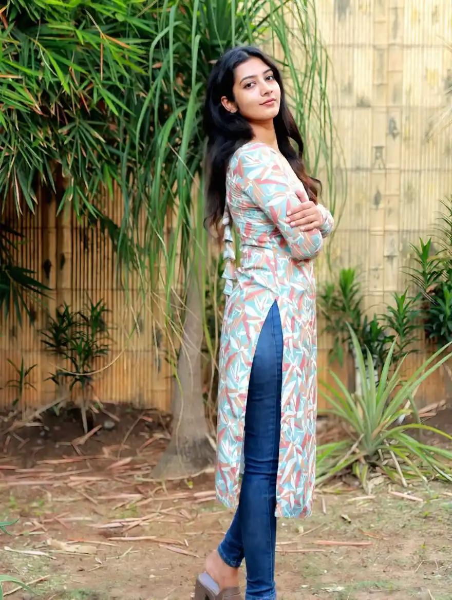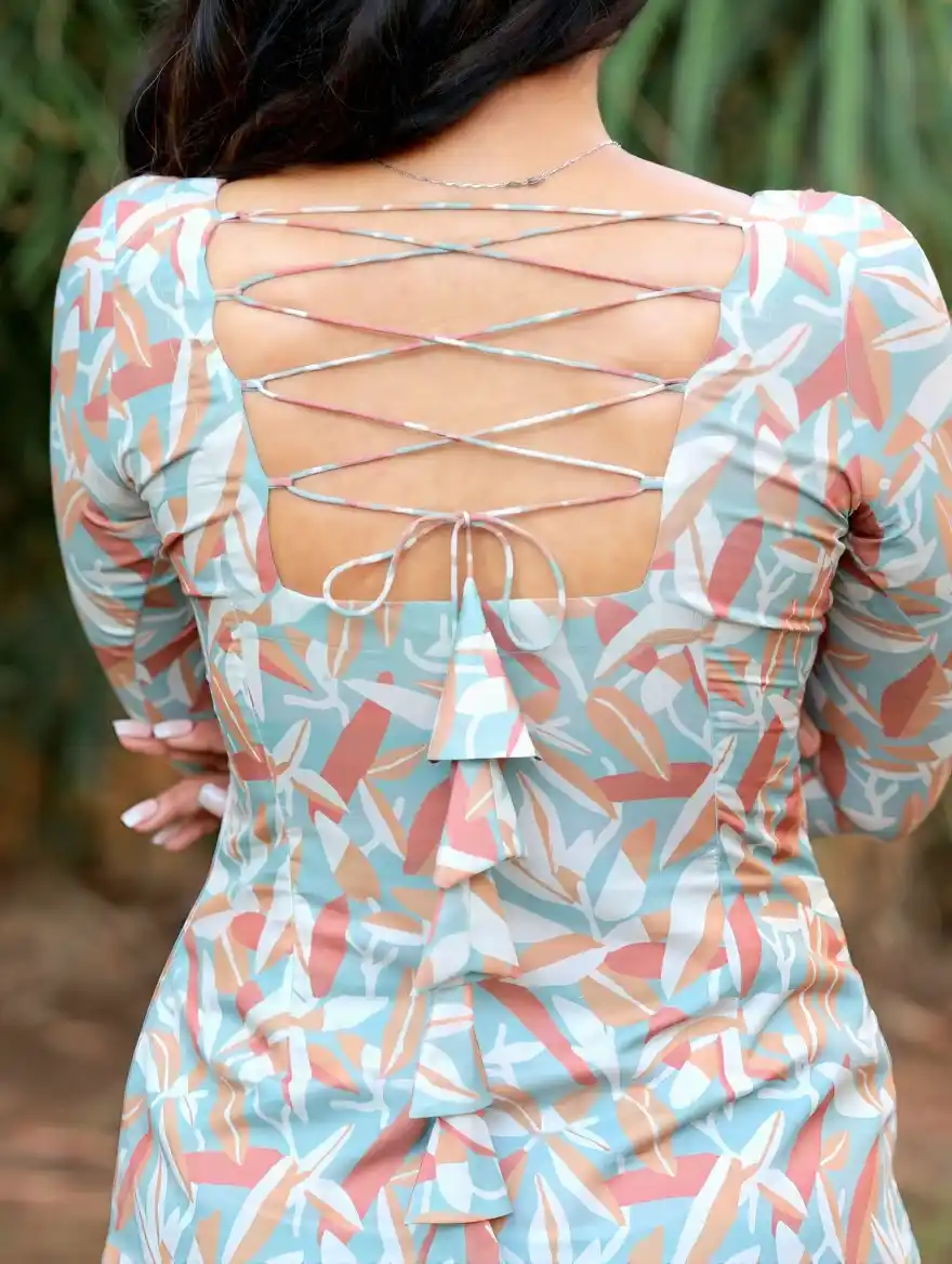 Ash green with pastel leaf print