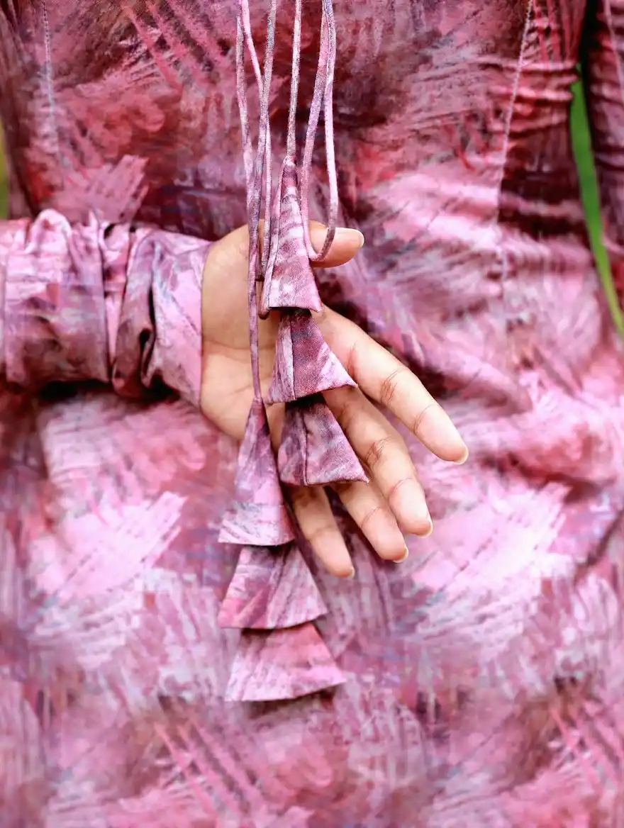 Pink Abstract Print Square Neck Kurti with Criss-Cross Back Tie-Up